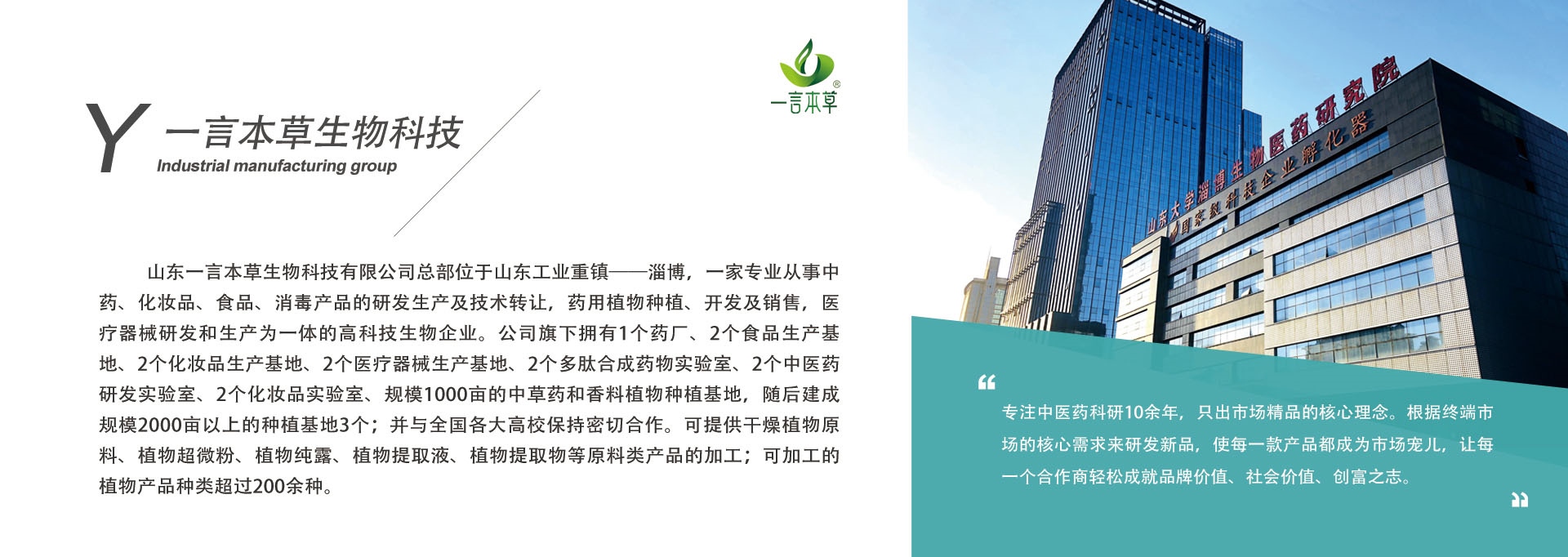山东一言本草生物科技有限公司总部位于山东医药之都--淄博,是一家专业从事中药、化妆品